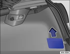 Die Seitenwand des rechten Ablagefachs im Gepäckraum können Sie in Pfeilrichtung Abb. 90 nach oben herausnehmen, um größere Gegenstände im Gepäckraum verstauen zu können.