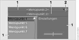 iDrive fasst die Funktionen einer Vielzahl von Schaltern zusammen. Diese Funktionen können damit an einer zentralen Stelle bedient werden. Im Folgenden finden Sie eine Einführung in die prinzipielle Menüführung. Wie Sie einzelne Funktionen steuern, ist im Zusammenhang mit den jeweiligen Ausstattungen beschrieben.