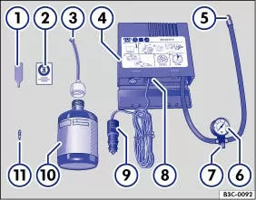 Beachten Sie die separate Bedienungsanleitung vom Pannenset-Hersteller.