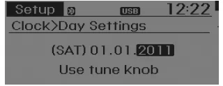 Verändern Sie die markierte Ziffer, um die Einstellung vorzunehmen, und drücken Sie dann den Senderregler (Tune), um zum nächsten Einstellpunkt zu wechseln (Reihenfolge: Tag/Monat/Jahr).